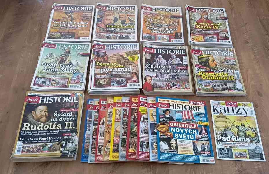 Prodáme rozsáhlou sbírku časopisů Živá historie z let 2009–2018. Celkem se jedná o 86 standardních čísel (včetně několika duplikátů) a 11 speciálních vydání (Speciál + Kauzy). Časopisy jsou ve výborném stavu, vhodné pro nadšence do historie, studenty nebo sběratele. Některá čísla obsahují přílohy.