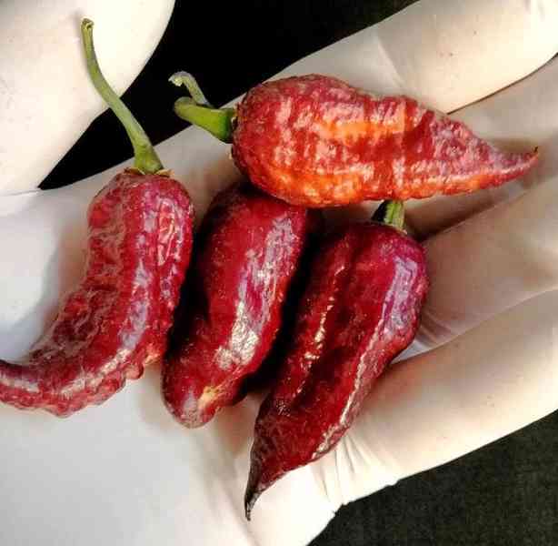 Chilli Hallows Eve - original (Capsicum chinense) pochází z USA a je vyšlechtěna z Pimenty de Neyde a Bhut Jolokií. Rostlina je vysoká 60 – 70 cm, široká asi 70 cm, s tmavě fialovými, někdy tmavě zelenými listy a hodí se do skleníku, či na balkón. Plod roste výrazně černý, ale při dozrávání se začne barva měnit. Skrze černou začne prosvítat tmavě zelená, která přechází do oranžové až červené a tvoří tak obdivuhodnou kombinaci barev. Lusk je asi 3 – 5 cm dlouhý, kuželovitý se špičkou a na povrchu vrásčitý, hodící se do všech ostrých jídel, do omáček, marinád a samozřejmě i k sušení. Balení obsahuje 10 semen za 41 Kč. Semena – neoseeds