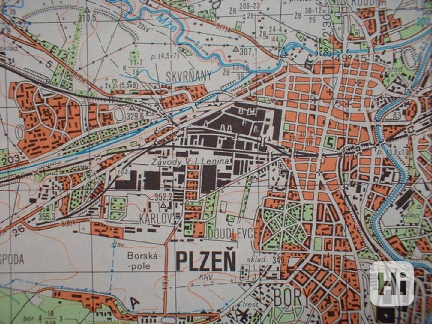 Podrobná vojenská mapa oblasti Plzně, Starého Plzence, Města Touškova, Vejprnic, Třemošné, Valchy a dalších s jejich přilehlým okolím. Detailně zakreslené tehdejší rozlohy obcí, polohy vodních toků a komunikací, polohy průmyslových a hospodářských objektů. Vrstevnicemi znázorněná nadmořská výška, zeměpisné souřadnice. Tajná mapa pro profesionální vojenské využití se zakreslenými strategickými objekty. Zakresleny jednotlivé průmyslové provozy, zemědělská družstva, stromové složení lesních porostů a jiných v lokalitě se nacházejících objektů. Plzeň jako průmyslové strategické město se rozvíjelo i v minulosti, u fotografií 1 - 6 jsou fotky dvou starých vojenských map každá z jiné doby - je vidět změny v zástavbě a rozlohy průmyslových objektů, obě mapy je možné si objednat, cena uvedená shodená za 1 kus. A jak obě mapy vypadají v porovnání s dnešním rozsahem zástavby? Mapy vydané generálním štábem Československé armády jsou ve velice zachovalém stavu, pravděpodobně nikdy nepoužité skladováné v archivu v roli nikde nepřeložené.